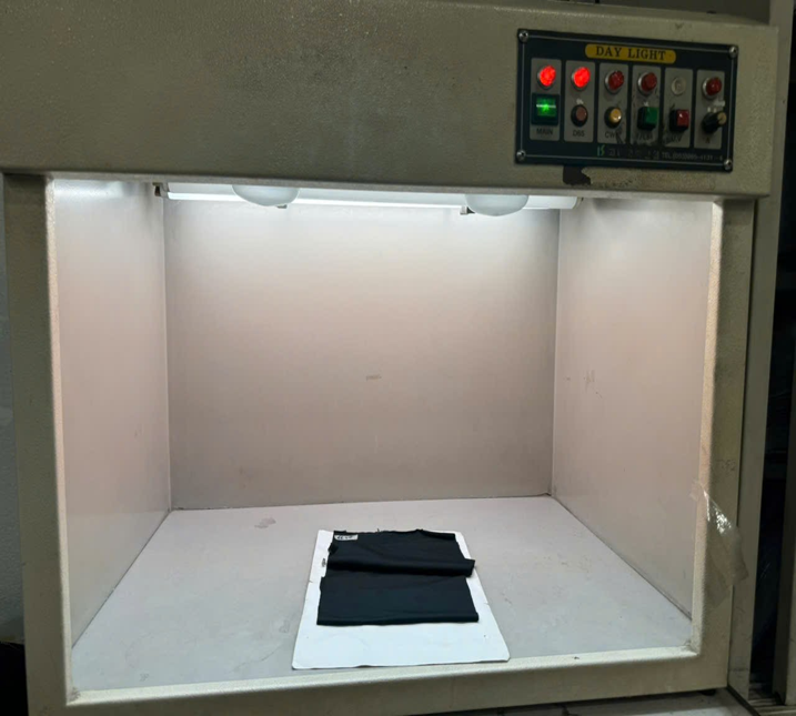 | 3 | Light Box | ISO 105-B02:2014 (Method 2 – 20 hours; Xenon light (Blue Wool Scale) | White & Light Shades: ≥ 3-4 Medium & Dark Shades: ≥ 4 Bright & Fluoro Colours: ≥ 2-3 |